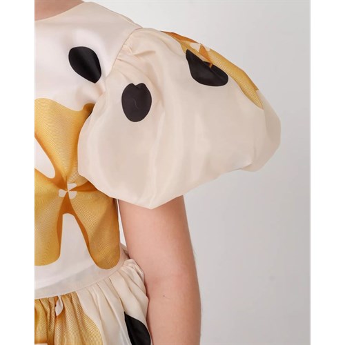 Данная модель выполнена из шелка, второй слой юбки из фатина средней жёсткости, х/б подклада и жёсткой сетки на нем.