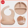 В наборе: силиконовая тарелка на присоске - 300 мл, ложка, нагрудник.