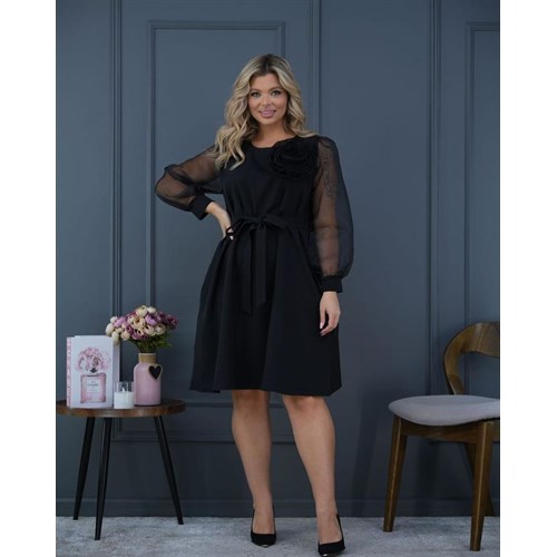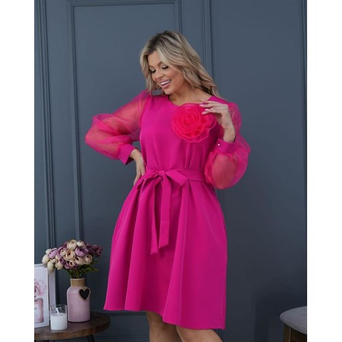 Привлекательное платье, изготовленное из ткани Барби с рукавами из Органзы, идеально подчеркнет вашу женственность и изящество. Оно придаст вам неповторимый облик на любом мероприятии. Сьемный цветок брошь на груди станет ярким акцентом вашего наряда, а рукава из органзы добавляют изысканности и воздушности.