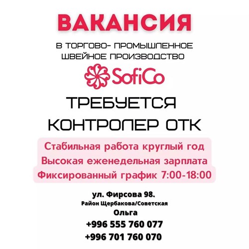 Нам нужны швеи, контролёр отк, упаковщицы