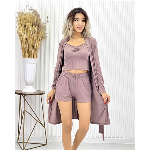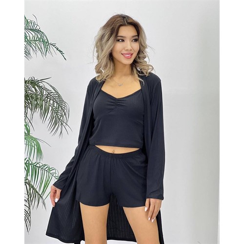 Халат+топик+шорты Размер: СМЛХл Ткань: Лапша Цена-900 сом