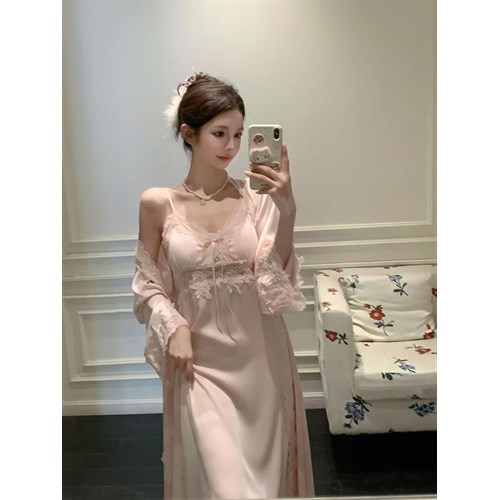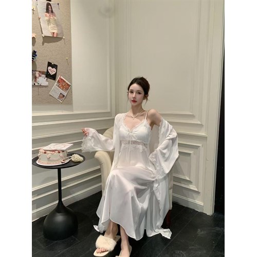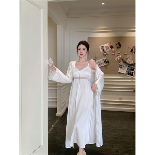 Позвольте себе насладиться безупречным стилем и комфортом с нашим новым комплектом: лёгкая сорочка и воздушный халат создают утончённый, женственный образ для дома.