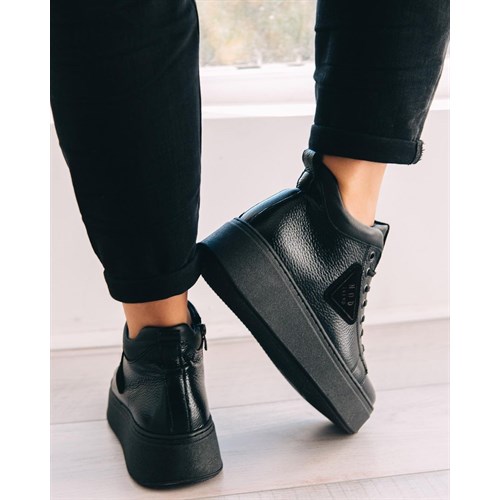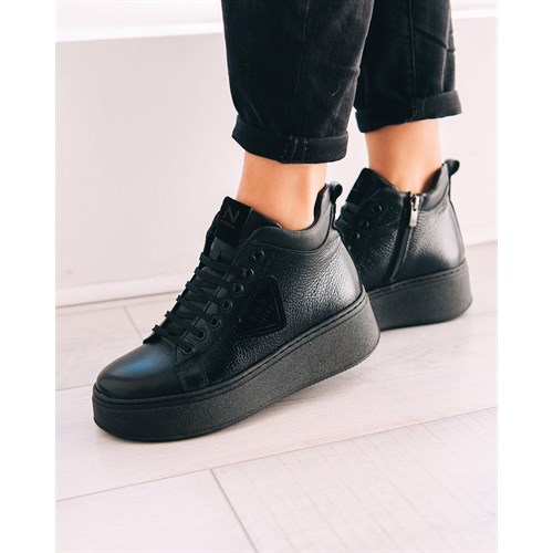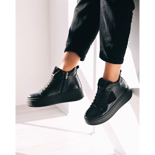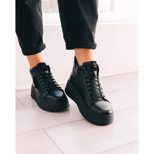 Высокие,чёрные кеды на молнии,кожа,деми.